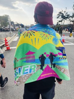 坂も多くてしんどいし、寒いし・・・完走ランナーさんたちも足つってたりとか、車椅子乗せられてたり